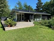 The cosy holiday home has a welcoming atmosphere with a newer, charming kitchen where cooking becomes part of the togetherness. Here you'll find everything you need, including a fridge-freezer, microwave and dishwasher - so dishes can be done quickly. In the corner living room, the wood-burning stove creates a warm atmosphere, perfect for a good book, a game or a nap. Should the summer days get too hot, the heat pump with cooling ensures a pleasant indoor climate. The house also has a small but functional bathroom with a toilet and shower. At the end of the day, two good bedrooms - both with double beds - are ready to give you a good night's sleep.