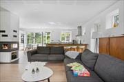 The summer house boasts a beautiful and classic exterior with whitewashed walls and a black tile roof. Inside, you’ll find a harmonious mix of modern and retro-style furnishings, complemented by beautiful flooring throughout. The house is spread over two levels: on the ground floor, there’s an open kitchen with direct access to the living room, a bedroom with bunk beds, a utility room with a washer and dryer, and a stylish bathroom. Upstairs, there are two bedrooms with double beds and an additional living area with floor-to-ceiling windows offering a lovely view of the garden. This upstairs space serves as a little retreat, perfect for relaxing with music or a good book. At the heart of the house is a built-in fireplace that brings warmth and coziness on cooler days. Adjacent to the kitchen, doors open onto the terrace, letting in light and fresh air. This is a highly recommendable summer house for both families and couples.