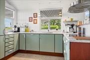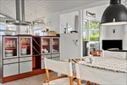 We warmly welcome you to this beautiful holiday home in charming summerhouse style with sea views. Here, a family of 6 can enjoy a wonderful holiday in comfortable surroundings. The modern kitchen is spacious and contains everything you need during your stay, including a dishwasher. In the kitchen, you have plenty of space to prepare holiday meals. The kitchen is directly connected to the large, open living room, which has both a dining area and a cozy sofa corner with an alcove. If you want to enhance the cozy atmosphere, you can light the wood stove. From the living room, you have access to the partially covered terrace, where you can spend many enjoyable hours playing board games or having good conversations. The house's sleeping arrangements are divided into 3 good bedrooms: one bedroom with a double bed, one with two single beds, and one with bunk beds. The bathroom is large, beautiful, and luxurious with a shower, toilet, underfloor heating, washing machine, spa bath, and access to a sauna – here, you can enjoy a wonderful wellness experience.