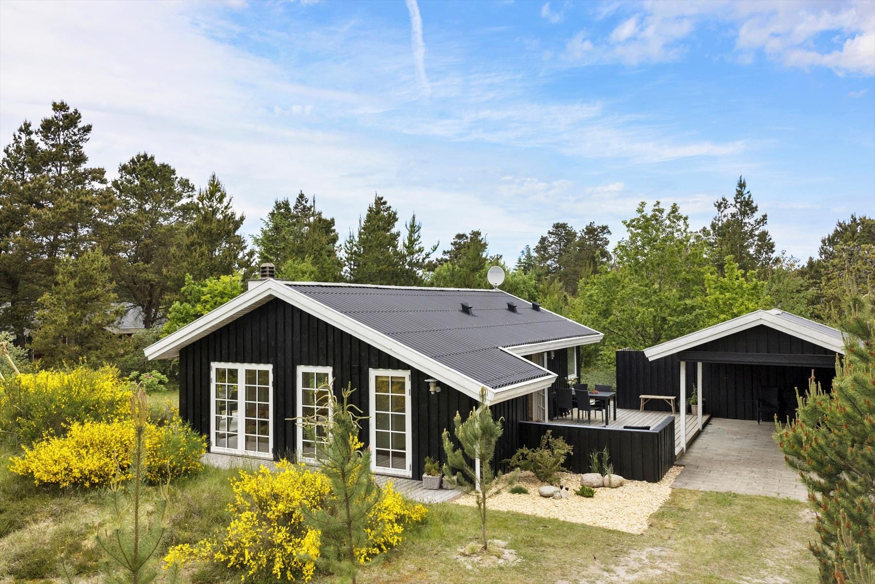 As soon as the sun comes out, you’ll be drawn to the lovely outdoor area – and for good reason. The terrace is furnished with garden furniture and sun loungers, perfect for relaxing with a good book or sipping coffee in the fresh air. The star of the show is the wilderness hot tub: imagine soaking in the warm water under a sky full of stars while the peacefulness of the Blokhus evening settles around you. Surrounded by natural greenery, the garden offers plenty of space for children to play and adults to simply unwind. It's the perfect place to breathe deeply and let go.