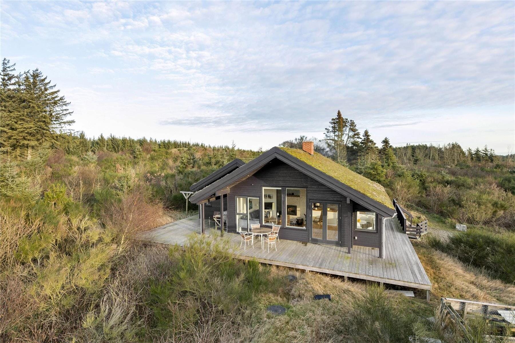 You can certainly also enjoy the panoramic views of the wild North Jutland landscape when spending time outdoors. A large wooden terrace wraps around the house, and wherever you look, you can feel the restorative effect of being close to nature. The terrace offers many inviting spots, some of which are covered, meaning you can always find a pleasant place to relax regardless of the weather and wind direction.