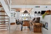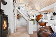 The home's well-thought-out layout creates a pleasant and inviting atmosphere. The bright living area with large windows brings nature inside, offering a peaceful and calming ambiance. Here, you can gather with family for cozy meals at the dining table or relax with a good book on the sofa. The kitchen is modern and functional, making it easy to prepare delicious meals after a day at the beach or an excursion in the area. The wood-burning stove in the living room serves as the perfect gathering spot on cooler evenings, spreading warmth and coziness throughout the house.