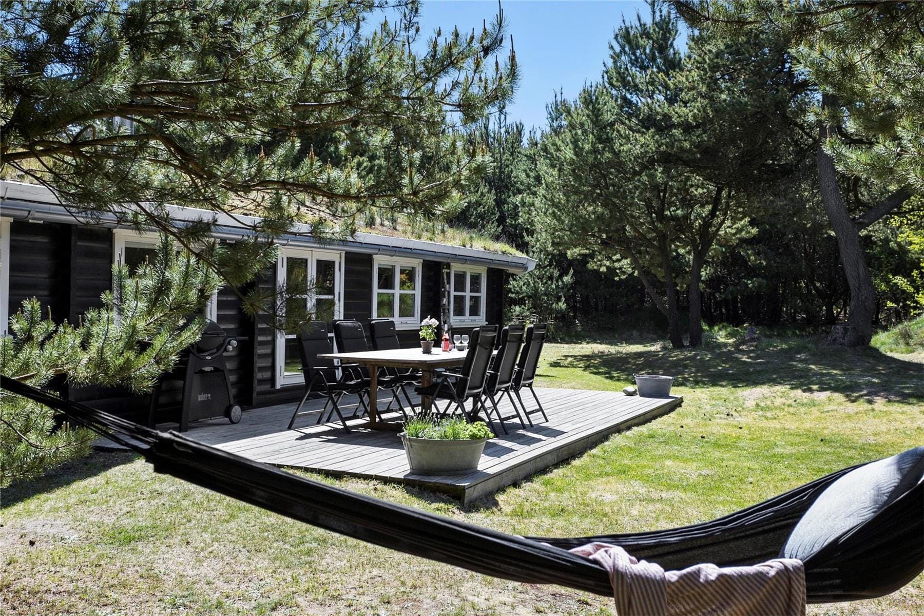 The holiday home is situated on a large natural plot in a forested area just north of Blokhus. When sitting on the open terrace, you may be lucky enough to spot roe deer, foxes, hares, squirrels and pheasants wandering around—it is pure idyll. The plot is enclosed and well screened by tall trees, so you are not disturbed by neighbours or passers-by.