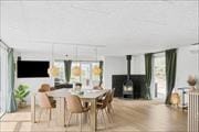 House-ID: BL1440This lovely holiday home at Moreavej 2 in Blokhus is the perfect choice for a relaxing holiday with family and friends. With a large, inviting terrace that includes a sauna, cold water bath, and outdoor shower, you have the ideal setting to enjoy the long summer days outdoors. The location is perfect for those looking for peace and comfort, yet still want to be close to Blokhus' wonderful nature and beach life. The cozy living room with a fireplace and the beautiful, light-filled kitchen provide the perfect atmosphere for spending time together during your holiday, making it feel like home.