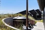 The holiday home also offers fantastic outdoor experiences that make the holiday extra special. The private terrace is ideal for enjoying warm summer days, and you can take a seat either in the sun or under the covered area. When the evening falls, you can light up the fire and enjoy good conversations under the stars, or jump into the wild bath and be enveloped by the warm water. For an added wellness experience, you can unwind in the sauna, which has a beautiful view of the nature, making it easy to lose track of time and place.