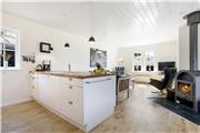 When you enter the holiday home, you are greeted by a bright and open living room that immediately envelops you in a warm atmosphere. The wood-burning stove creates a cozy ambiance on cooler evenings, and the open layout offers a wonderful sense of space. The kitchen area is stylishly decorated and provides the perfect setting for both cooking and socializing. Whether you’re standing by the stove or gathering around the dining table, there’s plenty of room to create memories together. The light colors and natural materials in the interior make the house feel both modern and warm at the same time.