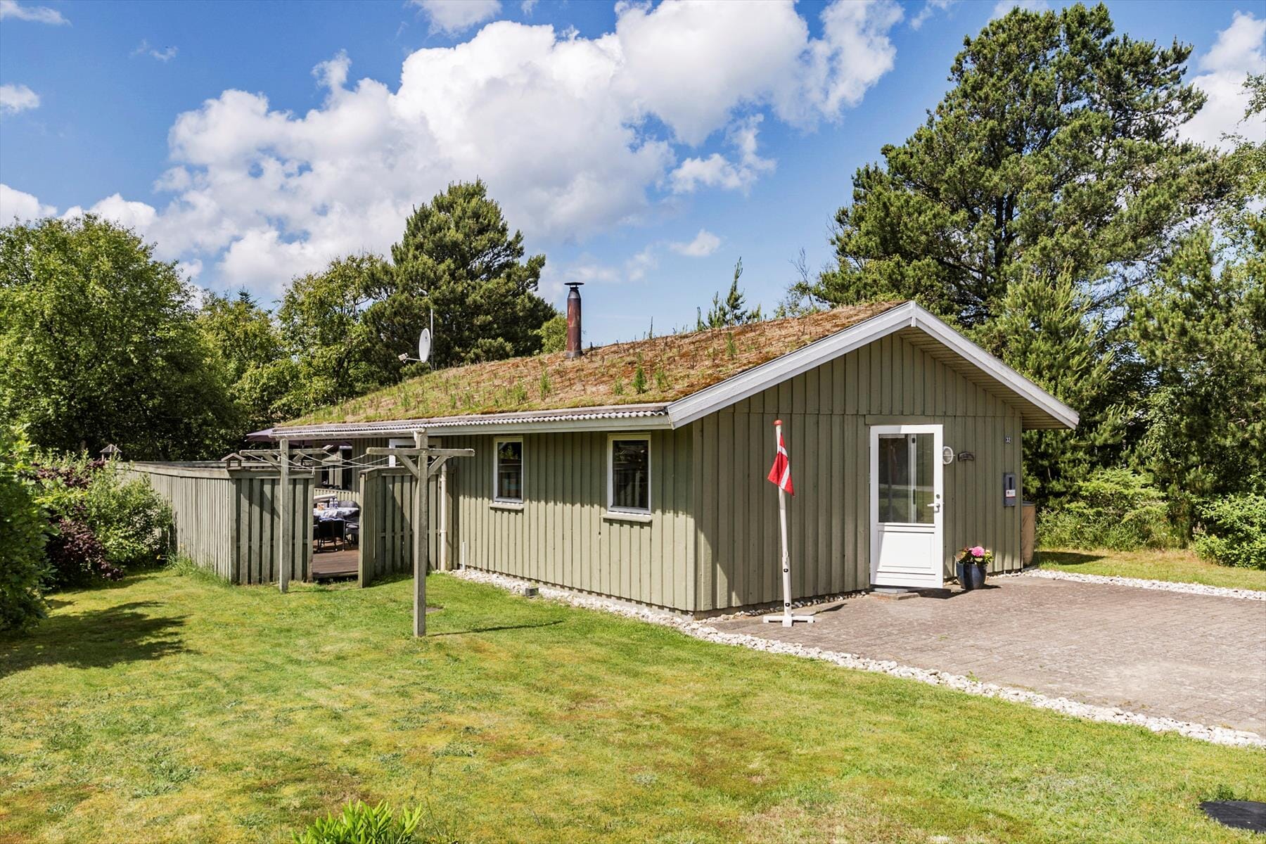 When you step outside, you'll be greeted by a lovely and secluded terrace where you can enjoy the sun in peace. This terrace allows you to have all your meals outdoors while being surrounded by beautiful nature. The garden around the house provides a great space for children to play, and adults can relax in a garden chair. The relaxed atmosphere on the terrace makes it a perfect spot to unwind with a good book, a coffee, or a glass of wine while listening to the birds and enjoying the fresh air.