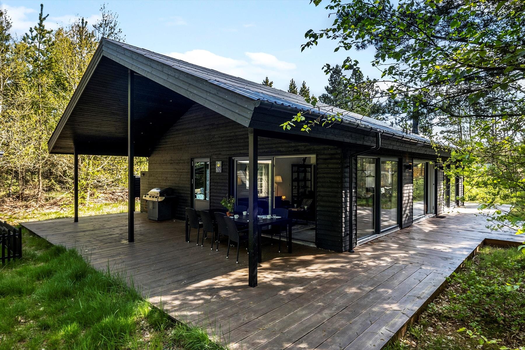 House-ID: BL1266At the end of a quiet road, this modern holiday home offers the perfect setting for a relaxing vacation surrounded by nature. Located in Rødhus, a serene area close to dunes, forests, and beaches, the house features a great layout and multiple terraces, making it ideal for a getaway with family or close friends.