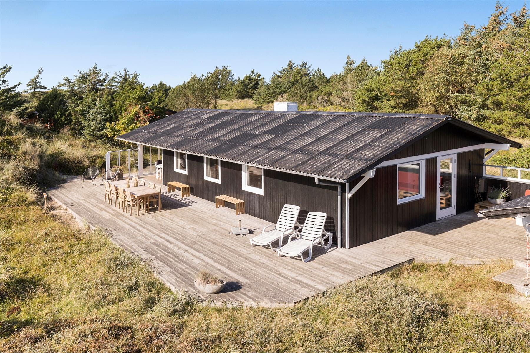The holiday home’s large and lovely terrace area enjoys complete privacy on the spacious 2,500 m² natural plot. There are terraces facing both west and south, and part of the outdoor area is covered and sheltered, providing shade or protection from the wind – perfect for barbecuing on bright summer evenings.