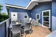Inside, the 47 m2 is very well utilized, so even if it is not the largest holiday home on the market, you still have the feeling of having enough space for shared moments of fun as well as a night's sleep and even the morning bath. The house's bathroom is in a small section next to the two bedrooms, while the dining kitchen and living room are in an open connection. Find a good book or a crossword puzzle, light the wood-burning stove, and lean back comfortably on the sofa - and finally close your eyes if you fancy a midday nap! If you want to solve puzzles or challenge the family in Yatzy, you can settle down at the dining table, which can of course also form the framework for all the wonderful meals that the holiday offers.