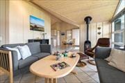 With a spa bath and sauna in the bathroom, three good bedrooms and a wood-burning stove in the living room, it's only nice if the weather allows for indoor holiday fun. The house invites you to slow down and relax with wellness and completely laid-back moments - perhaps just interrupted by a walk or another excursion every now and then. In the living room, the large window section lets in plenty of daylight, and the patio door makes it easy to slip out into the garden if the children or the dog want to romp and play. But it is also tempting to just stay in the living room to read on the sofa, play card games at the dining table or cook in the open and well-equipped kitchen.