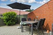 From the living room, you can step directly out onto a completely enclosed terrace, which is well positioned in relation to the sun. The deckchairs and garden furniture ensure that you can feel extremely comfortable when you relax with a good crime story, a cross-quest or a cool refreshment - and if you need shade while you drink coffee in peace or have lunch with your loved ones, it is possible to open the parasol. A green and well-ordered common area spreads around the property, and here there are several good playgrounds, which are among the excellent facilities that can be used freely by the apartment's tenants.