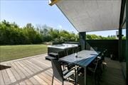 The holiday home's large, south-facing backyard is fenced, which is a nice detail if you have your dog with you on holiday (cats are not allowed). Both guests and dogs can enjoy the fact that there is plenty of space to run and play on the lawn, and when it's time for a break, the large tiled terrace is perfect for relaxing in a sun lounger.