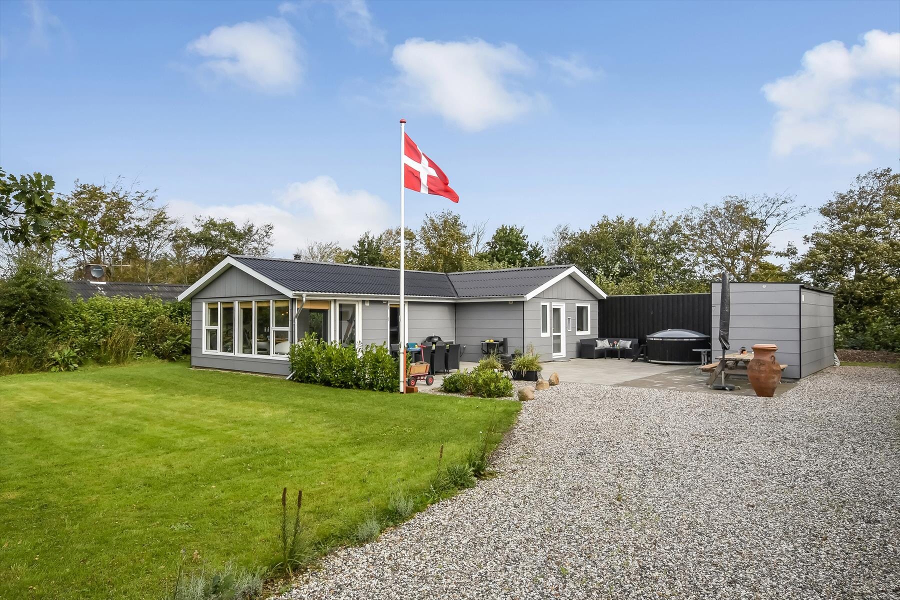 The house is located on the Vester Fælled wing in Bork Havn, which is delightfully undisturbed, but still close to the lively harbor promenade in Bork Havn. The house's terrace is the first thing you encounter when you park the car. The terrace is south-facing and open, so there is plenty of sun all day long. Outside there are both dining areas and cozy corners as well as a barbecue, and if the weather permits, the house also has a nice and inviting hot tub. From inside the house there are several doors leading to the terrace, and this makes it easy both to serve meals outside and to keep track of the whole family.