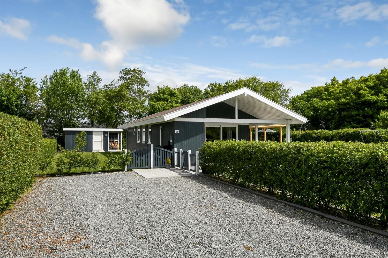 To the south and east of the holiday home there is a lovely wooden terrace. It is partly covered and equipped with both sun loungers, barbecue and garden furniture, so you can both relax, cook and dine outdoors. On the enclosed grounds, the lawn invites you to play garden games, and there is both swing and sandbox for the youngest holidaymakers.