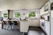With three good bedrooms, a bathroom, a guest toilet and a large living room with open kitchen, six people can easily and comfortably stay in the holiday home – so you can consider inviting a few friends along on holiday. No matter who you are and how many of you there are, you are sure to appreciate the house's inviting atmosphere and cosy interior with comfortable furnishings. There are light wooden panelling on the walls and high ceilings throughout, in classic holiday home style, and the living room in particular is very bright thanks to the large floor-to-ceiling windows. A wood-burning stove is ready for cool evenings, and if you need digital entertainment, the living room's Smart TV makes it easy to watch your favourite films and series. If you need to relax completely, you can get ready for a hot spa bath and a trip to the sauna in the large, luxurious bathroom.