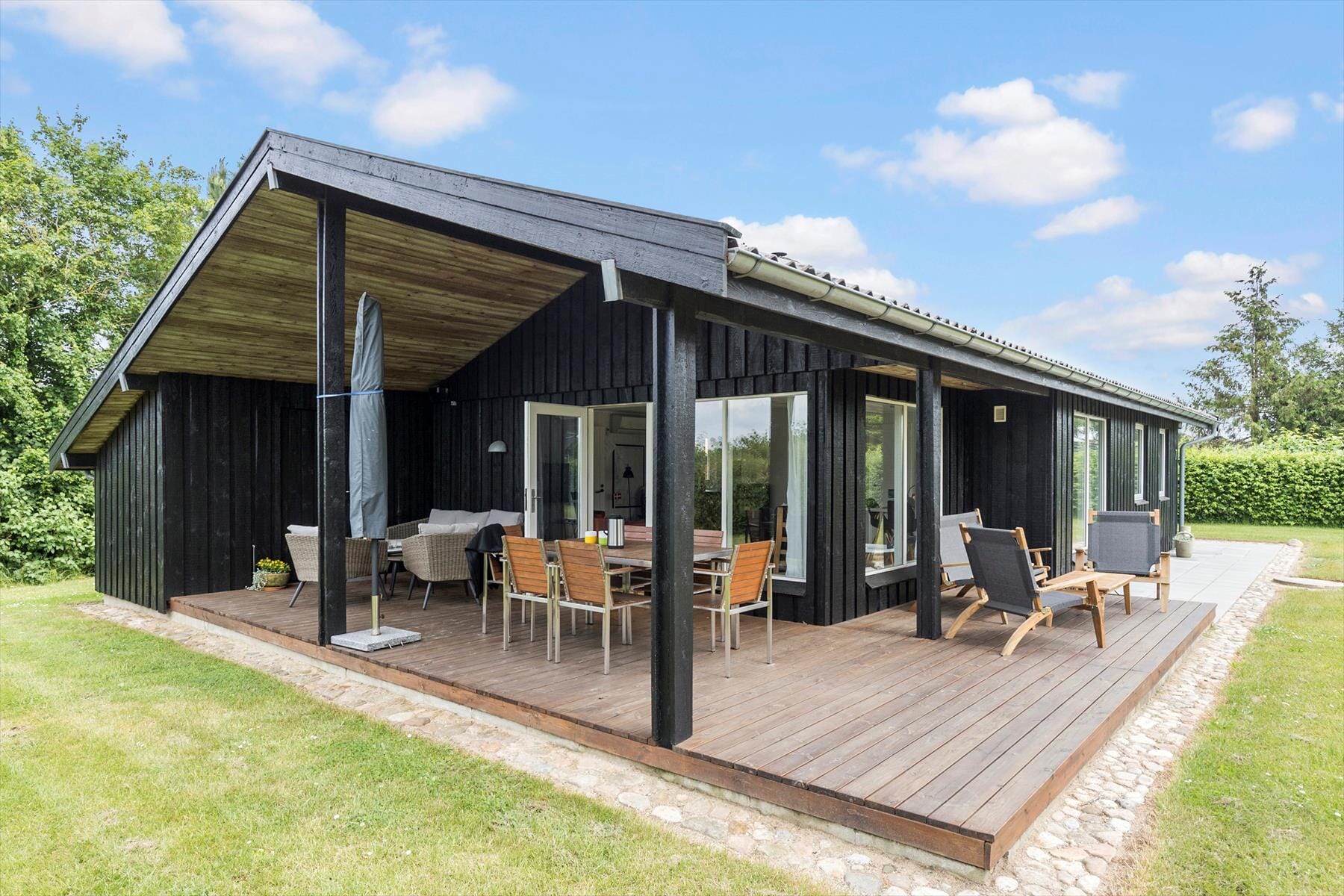 The holiday paradise stretches out in the outdoor area, thoughtfully designed for you to fully enjoy life. The grounds are fenced and flat, so the children can play freely while you enjoy privacy and the beautiful nature around you. In the evening, the family gathers around the bonfire, and the roasted marshmallows melt in your mouth as the fire dances in front of you. After a day at the beach, you can rinse off the sand in the convenient outdoor shower, or perhaps take a refreshing morning bath under the open sky. If you’ve been fishing, there’s a handy fish cleaning station where you can prepare your catch before lighting the grill and making a lovely holiday meal. And when your body craves warmth, the sauna awaits, where you can warm up after a fresh day in nature – or perhaps roll in the snow afterward and feel the coolness against your skin. The beach is just 700 meters from the house, where you can truly relax and enjoy life.