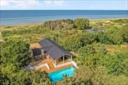 As soon as you turn off the country road, you'll feel the wonderful calmness. The closer you get to this holiday home, the more quiet and peaceful it becomes all around. The only sound you'll hear inside the house is the beautiful sound of the waves. The holiday home is completely undisturbed on Hegedal Beach, specifically on the only part of the coast where there's no road between the beach and the holiday homes. Surrounding the outdoor pool is an exceptionally beautiful, large sun terrace where garden furniture, loungers, and a hammock invite dreamy hours of relaxation. Opposite the pool, overlooking the pool and the forest, there's also a covered terrace where you can dine in the twilight while keeping an eye on the children enjoying their last swim of the day in the beautiful pool. Finally, you can also look forward to a large west-facing terrace where you can enjoy the most beautiful panoramic views of the beach and the sea. The pool can be used when weather conditions permit.