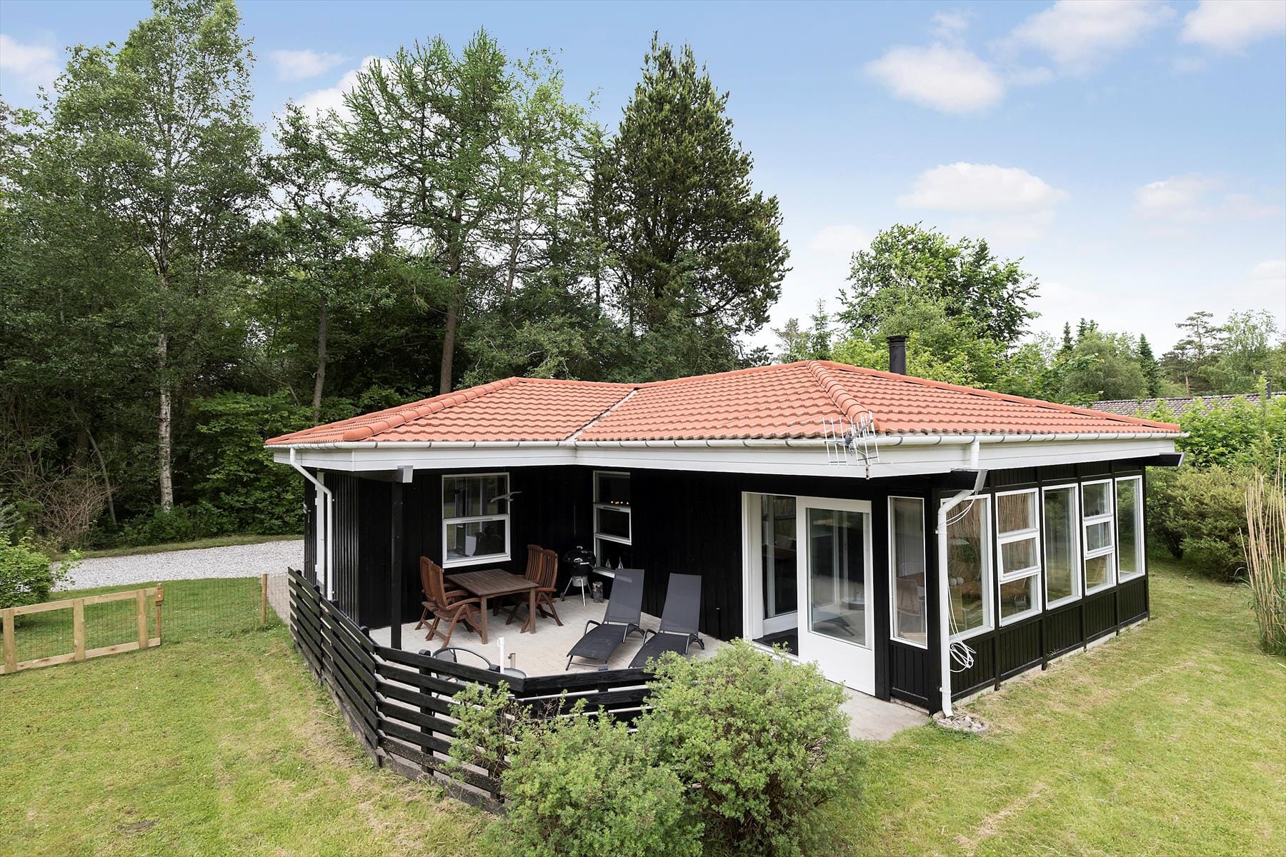 The house is located in a beautiful and quiet holiday home area just 3 km from Ree Park. Here you can watch all kinds of animals and eat all the ice cream you want. The area is ideal for active holidays with Stubbe Lake just to the northwest. The area is wooded and excellent for both cycling and hiking. Beautiful landscapes and charming small villages with fine old churches. Visit Jernhatten, created back in the Ice Age, Havmøllen, which often offers activities, refreshments and lunch, Rugaard Manor and Glatved Strand. Glatved Strand is very special and here you can take a dip and go fishing. Just 2.5 kilometres from the house you can take the beautiful nature trail that runs from Gravlev to Ebeltoft - a distance of 8 km. In Tirstrup Brugs, which is 3 kilometres from the house, you can buy groceries and bread all year round. The beautiful old market town of Ebeltoft dates from 1301 and is 12 kilometres from the house. Ebeltoft is full of idyllic city life and a maritime harbour environment. There are plenty of restaurants and lovely shops. Popular sights include the Frigate Jylland, the Glass Museum and the Old Town Hall, but don't forget to make time for a stroll through the town and visit Ny Malt, where exciting things often happen. The largest summerland in the Nordic region - Djurs Sommerland - is 20 kilometres from the house and there are countless other attractions elsewhere in Djursland