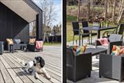 The holiday home is located at the end of a closed road and has a beautiful view of the hilly landscape. The elevated location gives you a wonderful sense of tranquillity and you are only 600 metres from the child-friendly beach in Ebeltoft Vig. Outside you'll find a fantastic plot with a large terrace where you can enjoy the sun while the children play in the playhouse or sandpit. From the terrace, a staircase leads down to the garden, which is ‘wild with purpose’ - a lovely, enclosed oasis where you can enjoy long afternoons and warm evenings around the fire. There's also a trampoline for the kids and a nail block for the adults who want to compete on their hammering skills.