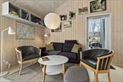 The atmosphere in this lovely holiday home is unique - every detail has been thought of. The house is bright and cosy, with beautiful exposed beams and cockscombs adding a charming atmosphere. The interior combines cosiness and stylish elegance to make you feel right at home. You are welcomed in an entrance hall that leads to the cosy kitchen with a half-wall to the dining area. From here, it opens up to the lovely living room with a wood-burning stove, large windows and direct access to the sun terrace. The ground floor also has a nice bathroom with shower and washing machine and a charming double bedroom. From the living room a staircase leads to the first floor where you will find two more nice bedrooms - one with a double bed and the other with two single beds that can be pushed together