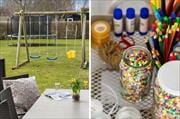Enjoy Life Outside The undulating forest plot stretches out like an endless oasis of adventure. Here, the grass is wild and lush, and only a small part of it is mowed, allowing nature to flourish with beautiful results. A fire pit invites you to cozy evenings under the stars, surrounded by the scents and sounds of the forest, the crackling fire, and the opportunity to roast marshmallows or bake pancakes. There is a cool corner with a sandbox, and when you need to refresh yourself, you can enjoy an outdoor shower under the open sky and in the midst of the forest.