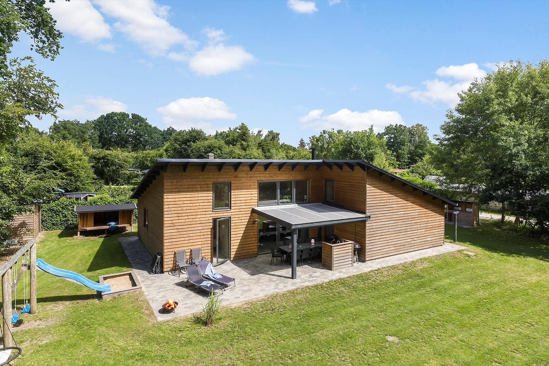 House-ID: 8839Welcome Inside: Step into this modern summer house from 2022, where the interior and room layout are thoughtfully designed, radiating Scandinavian coziness and functionality. The beautiful epoxy floors and high ceilings create a bright and spacious atmosphere. You are welcomed into a practical utility room, with enough space to store a stroller overnight. The heart of the house is the large communal area, where the living room, kitchen, dining area, and children's play corner seamlessly blend together. Here, everyone can be together yet enjoy their own activities. The wood-burning stove in the corner spreads warmth and coziness, and you can access the terrace and garden through the living room’s patio door. Enjoy a good night's sleep in five comfortable bedrooms, all with double beds, and one even has a bunk bed. There are two lovely bathrooms, one featuring a spa and sauna. Relax in the spa, enjoying the bubbles and tranquility, or take a soothing sauna session on a cold autumn day – that's the good life.