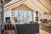 The holiday home radiates light and airiness as soon as you step inside. In the living room, daylight pours in through the large windows, creating a warm and inviting space where the high ceiling adds to the sense of spaciousness. Here, you can settle comfortably on the sofa with a view of the garden, while enjoying the peace and the company of those you care about. The kitchen is open to the living room and forms a natural setting for holiday meals and cozy moments at the dining table. When the day winds down, you can retreat to the quiet bedrooms, all designed with a focus on comfort and relaxation.