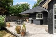 The holiday home is located on a 1164 m2 plot, with plenty of space for activities on the large lawn which is surrounded by large shrubs and trees.