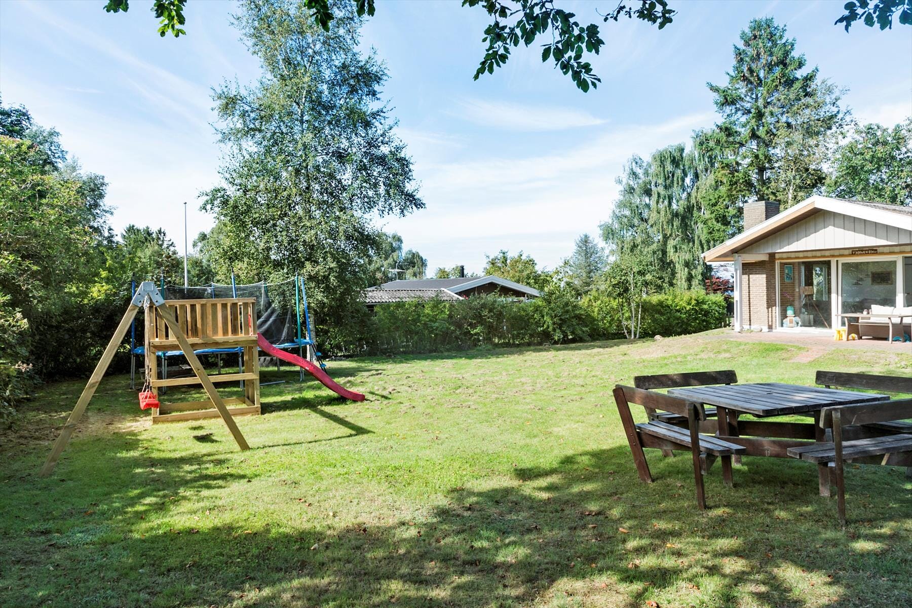 Outside, the property offers a large and partially covered wooden terrace, as well as a beautiful lawn for ball games and play.