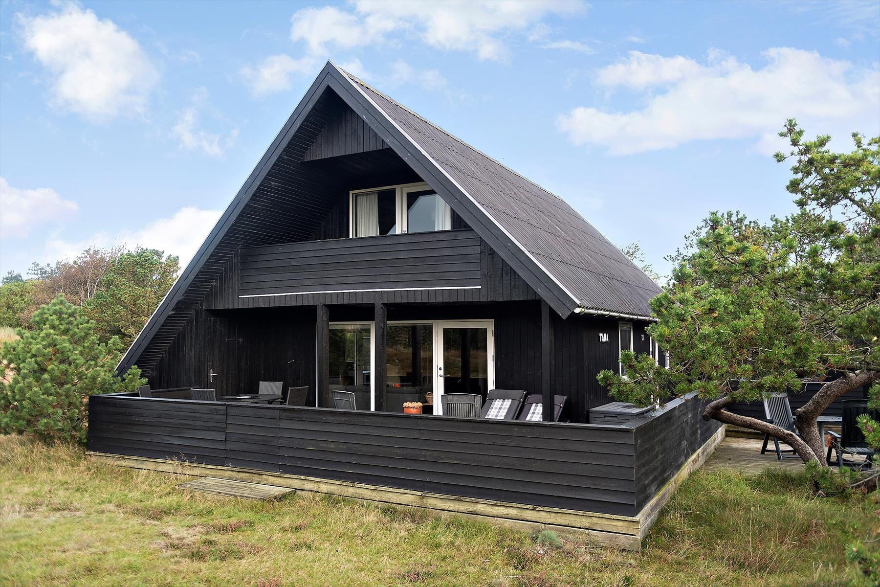 When the sun invites you out onto the terrace, you have several lovely sitting areas to choose from. A partially covered and com­ple­te­ly secluded terrace extends from the living room, and in addition, there are fully open terraces on both sides of the house – and from the first floor bedroom, you even have access to a covered balcony, allowing you to check the wind direction before settling down. The holiday home sits on a large nature plot, and the beautiful sur­ro­un­dings con­tri­bu­te to enhancing the laid-back leisurely life and the freshly grilled evening meals under the open sky.