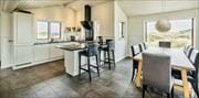 The holiday home resembles a classic Fanø house, standing there in the dunes with a thatched roof, sash windows, and an arched dormer over the green front door. However, the property was only built in 2021, and indoors, it is furnished with modern interiors and beautiful details that ensure you and your loved ones have a fantastic base for relaxing and enjoying holiday life. In one of the bathrooms, there is a bathtub and an infrared sauna if you want to fully unwind and feel the warmth spreading all the way to your toes. The beautiful kitchen is a lovely gathering place – here, daylight pours in from three directions, and you have an unobstructed view of the natural surroundings, whether you are standing at the stove or sitting on the bar stools at the kitchen island. You will definitely also enjoy the sea view in the first-floor lovely living room, where you can see far to the south over Mandø or let your gaze wander over the water to the west and north. The living room also offers several cozy corners where you can dive into a good book or take a much-needed afternoon nap.