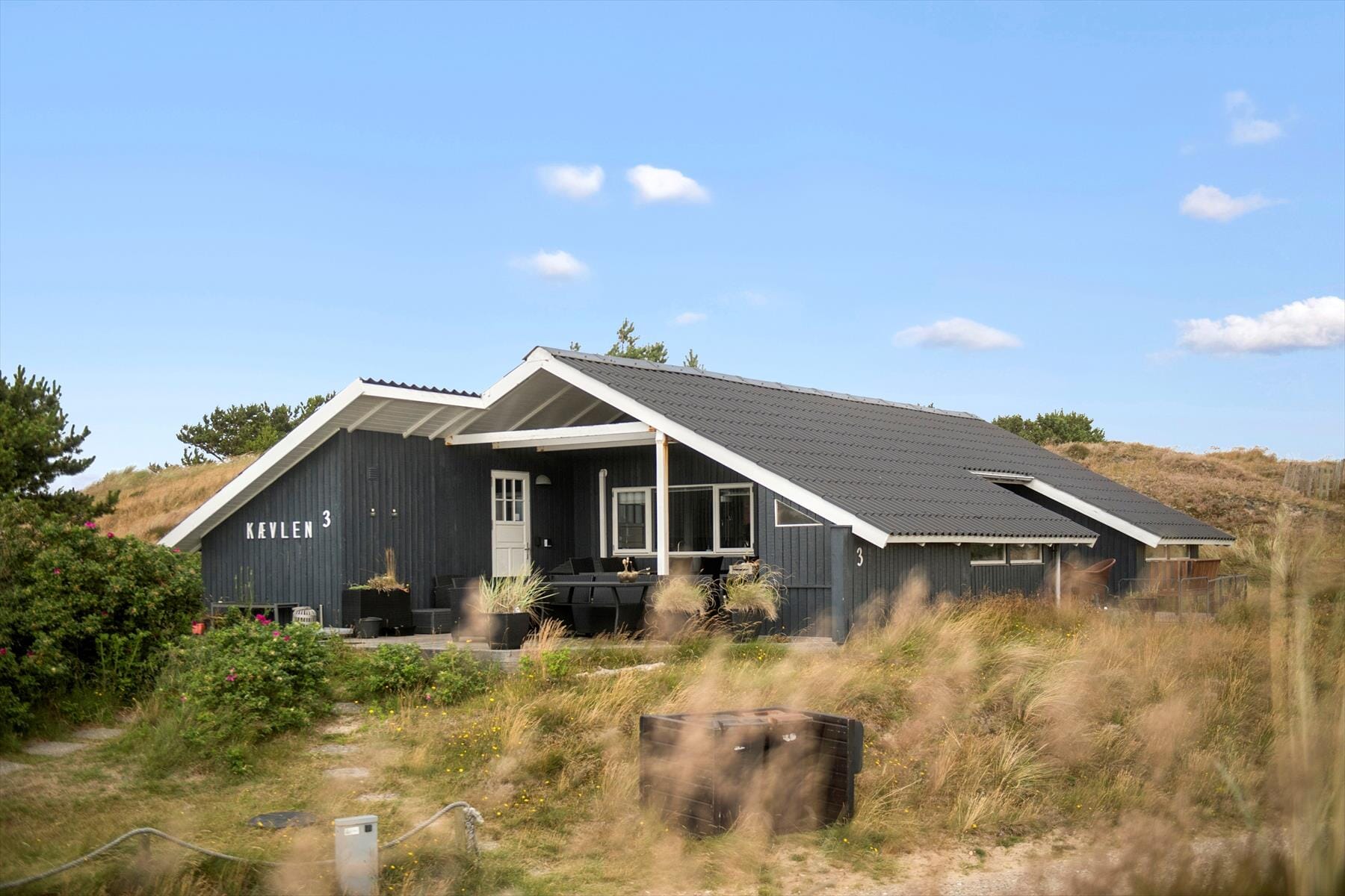 House-ID: FAN010It hard to say whether it is best to enjoy life inside or outside in this lovely holiday home at Vagtbjerg Klit 3. The house has a particularly cozy decor, and outside there are several well-laid terraces where you can inhale the fresh sea air of the west coast and watch the sun shine over the hilly landscape of Rindby.