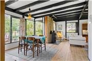 The house has white painted walls and lacquered floors throughout.