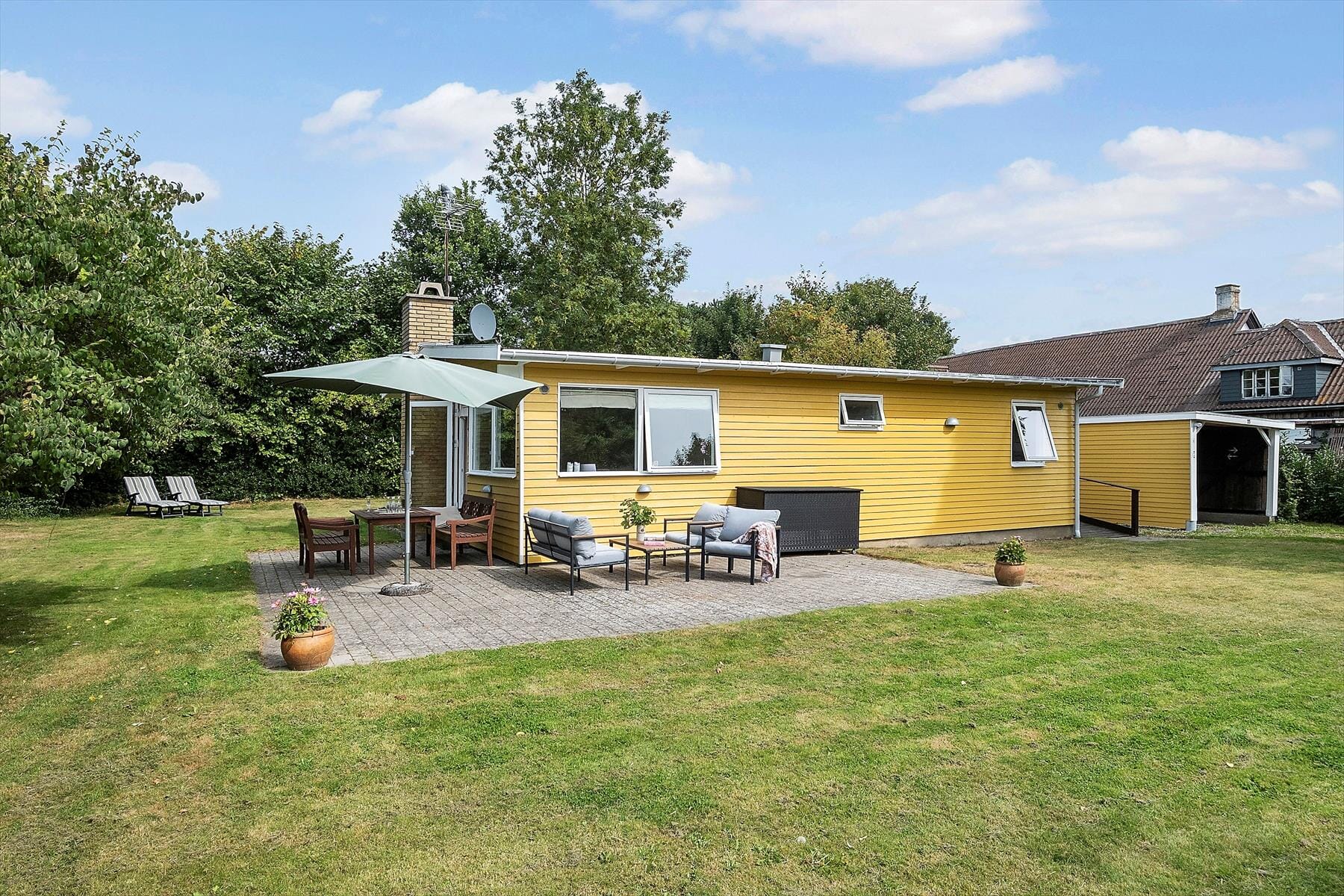 Draußen erstreckt sich ein großes Grundstück mit einer üppigen Rasenfläche – ideal für Spiel und Spaß für Kinder und Erwachsene. Die Terrasse ist perfekt für einen Morgenkaffee oder ruhige Momente mit einem guten Buch, während die frische Meeresluft eure Sinne belebt. Hier könnt ihr das dänische Sommerleben genießen, den Vögeln lauschen und die Sonne auf eurer Haut spüren. Mit viel Platz, um die Familie unter freiem Himmel zu versammeln, werdet ihr euch in diesem wunderschönen Außenbereich garantiert wie zu Hause fühlen.