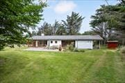 The 2102 m² plot is well situated at the western edge of the holiday home area. Tall pine trees and other greenery provide privacy from the neighbors, while the landscape opens up towards the rolling hills leading to Lønstrup Cliff. To the south of the holiday home is a south-facing terrace, and with a pétanque court and a large lawn, you’ll have plenty of opportunities for garden games.