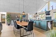 The 150 m² holiday home was built in 2022, so you can look forward to a vacation in a bright and modern house where everything is just perfect. The layout is sensibly designed, and the rooms are very well arranged, so you can comfortably gather up to eight adults and two children in these cozy and comfortable surroundings. The three bedrooms in the house are well distributed across both ends, plus there’s a sofa bed in the activity room and two lofts equipped with extra mattresses. There are two bathrooms, which is convenient if you’re traveling with a larger group. The larger bathroom deserves special attention as it’s a luxurious wellness space with a hot tub and sauna – and with ambient ceiling lighting and a Sonos sound system, you can create exactly the relaxing atmosphere you desire. Sonos is also available in the holiday home’s living room and activity room, which are right next to each other. In the activity room, you can challenge each other in pool and air hockey – or focus on cooking in the beautiful open kitchen or relax in the cozy, high-ceilinged living room.