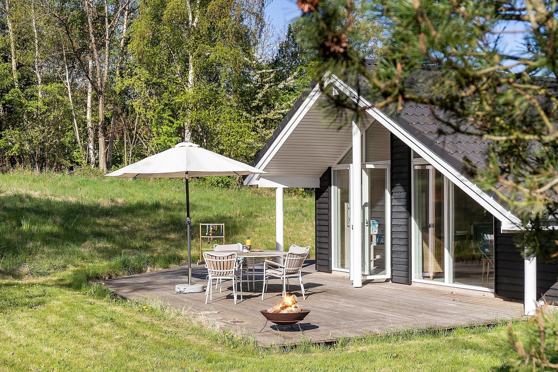 Welcome to a modern and inviting summer house where light, space, and comfort come together beautifully. The house offers a large, spacious master bedroom and an additional bedroom with a double bed, plus an extra sleeping space in the living room — making it perfect for both families and guests. The open-plan kitchen and living area create a natural gathering point with its modern kitchen, large windows, and seamless flow out to the terrace and garden. The interior is designed with care, featuring a calm Nordic style and everything you need for a relaxing holiday.