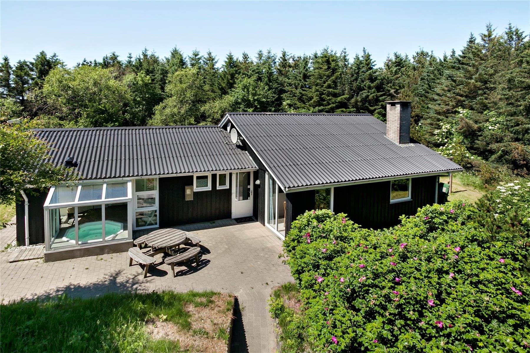 The spacious natural plot ensures peace and privacy, thanks to the tall trees and rosehip bushes that shield the house from neighbors and passersby. There’s plenty of room for children to play and explore while adults relax on the terrace or prepare dinner on the grill. With only 600 meters to the North Sea, you can easily start your day with a refreshing dip or end it with a peaceful walk along the coast, soaking in the fresh, salty sea air.