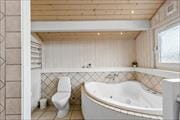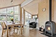In this holiday home, the key word is 'quality'. There are good furniture, well-functioning appliances, and beautiful, stylish decor in light and warm colors. The combined dining and living area serves as a natural gathering place for the whole family; especially the sofa arrangement by the large windows encourages cozy moments. It is also possible to light the wood stove and use the wireless internet. The kitchen is well-equipped and has access to the covered terrace, and with four bedrooms and two bathrooms at one end of the house, functionality and practicality have been prioritized. Both bathrooms have showers, and one also has a whirlpool and sauna, as well as a washing machine and dryer. Additionally, there is a baby cot and a high chair, making this a great place for both older and younger children to enjoy their holiday. New fly screens in all bedrooms.
