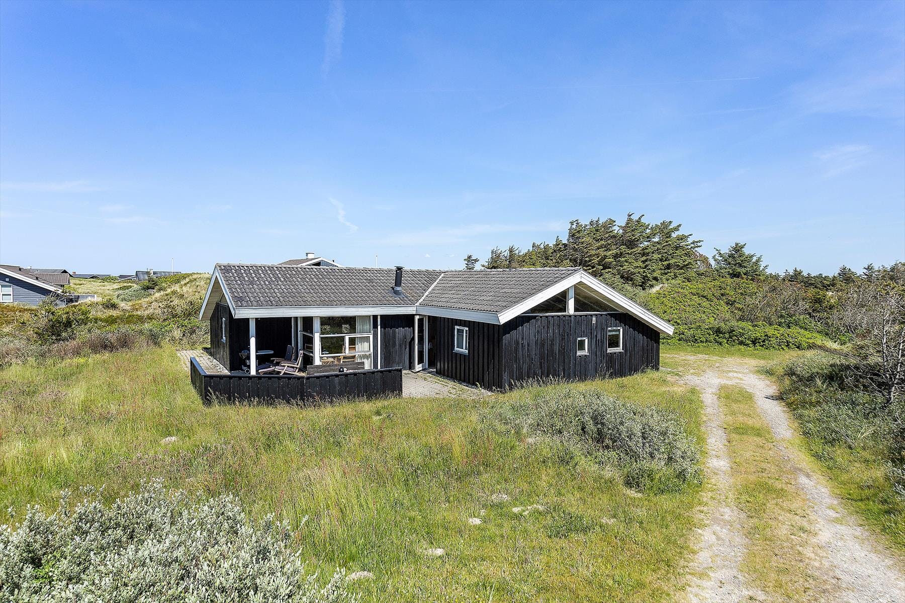 This holiday home has several spacious terraces, so you can always find a sheltered spot in the morning and evening, and you have great opportunities to enjoy the beautiful evening hours in Northern Jutland. The nature plot is well-screened, and you can enjoy life peacefully and undisturbed from several spots on the property.