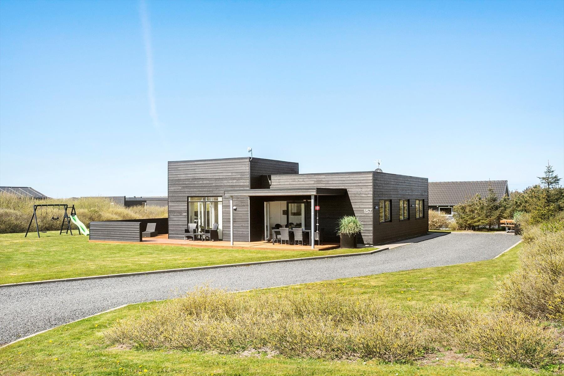 With 122 m² offering four bedrooms and two bathrooms, there is plenty of space for the whole family – or even two families with children, if you wish to vacation with close friends. Either way, you can look forward to spending your days in stylish and comfortable surroundings, as the house is a modern construction with many luxurious details. For instance, underfloor heating in all rooms ensures a pleasant indoor climate, while the large windows and light tones enhance the sense of space. The living room is perfect for cozy moments on the sofa and delightful dinners at the long table, and the open kitchen is ideal for cooking together. For complete relaxation, the hot tub in the largest bathroom offers the ultimate indulgence.