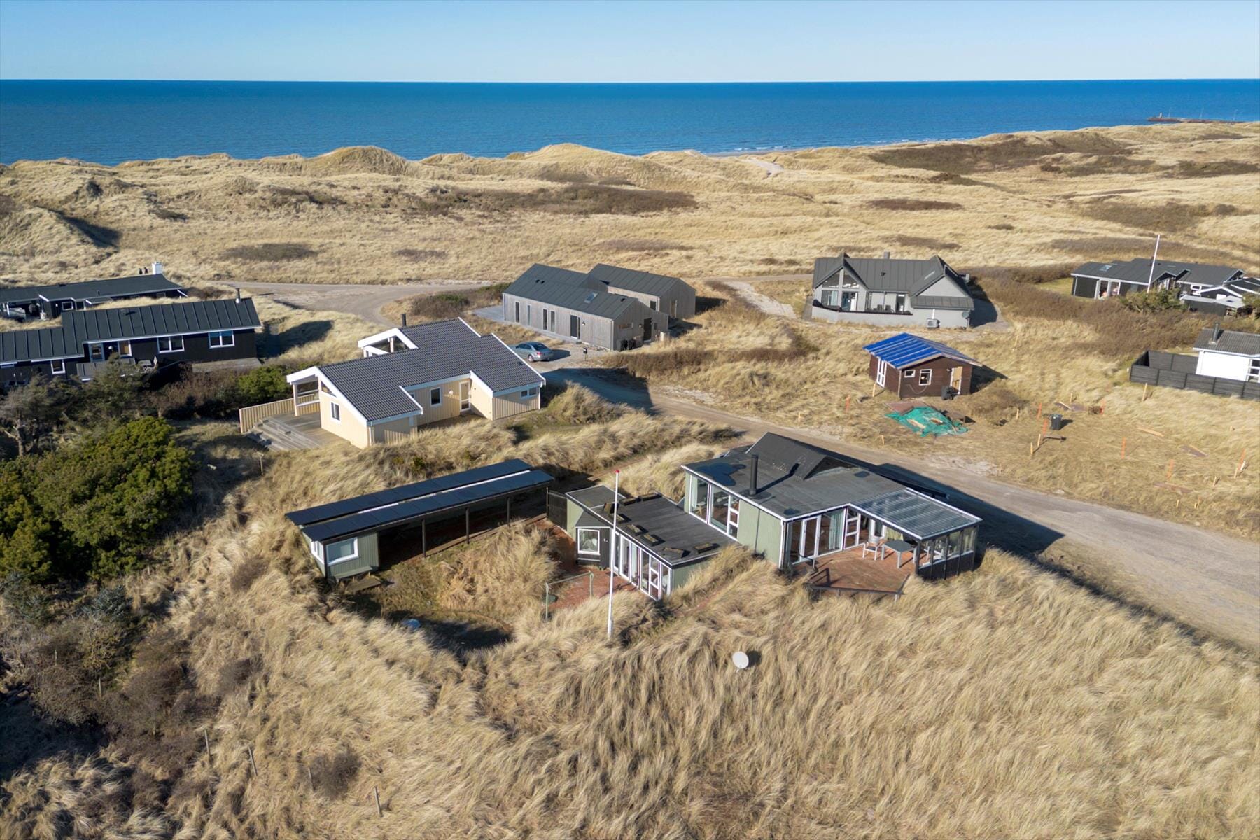 At Jomfrubakkerne 15 in Løkken, you’ll find a holiday home that combines modern comfort with charming architecture and a fantastic location. The stylishly decorated house offers three spacious bedrooms and two bathrooms, one of which features a whirlpool and sauna – perfect for relaxing after a day by the North Sea. The open-plan kitchen and living room create a bright and inviting space where the family can gather for cooking, chatting, and unwinding. Large windows provide a stunning view of the surrounding area, while the fireplace adds a warm and cozy holiday vibe.