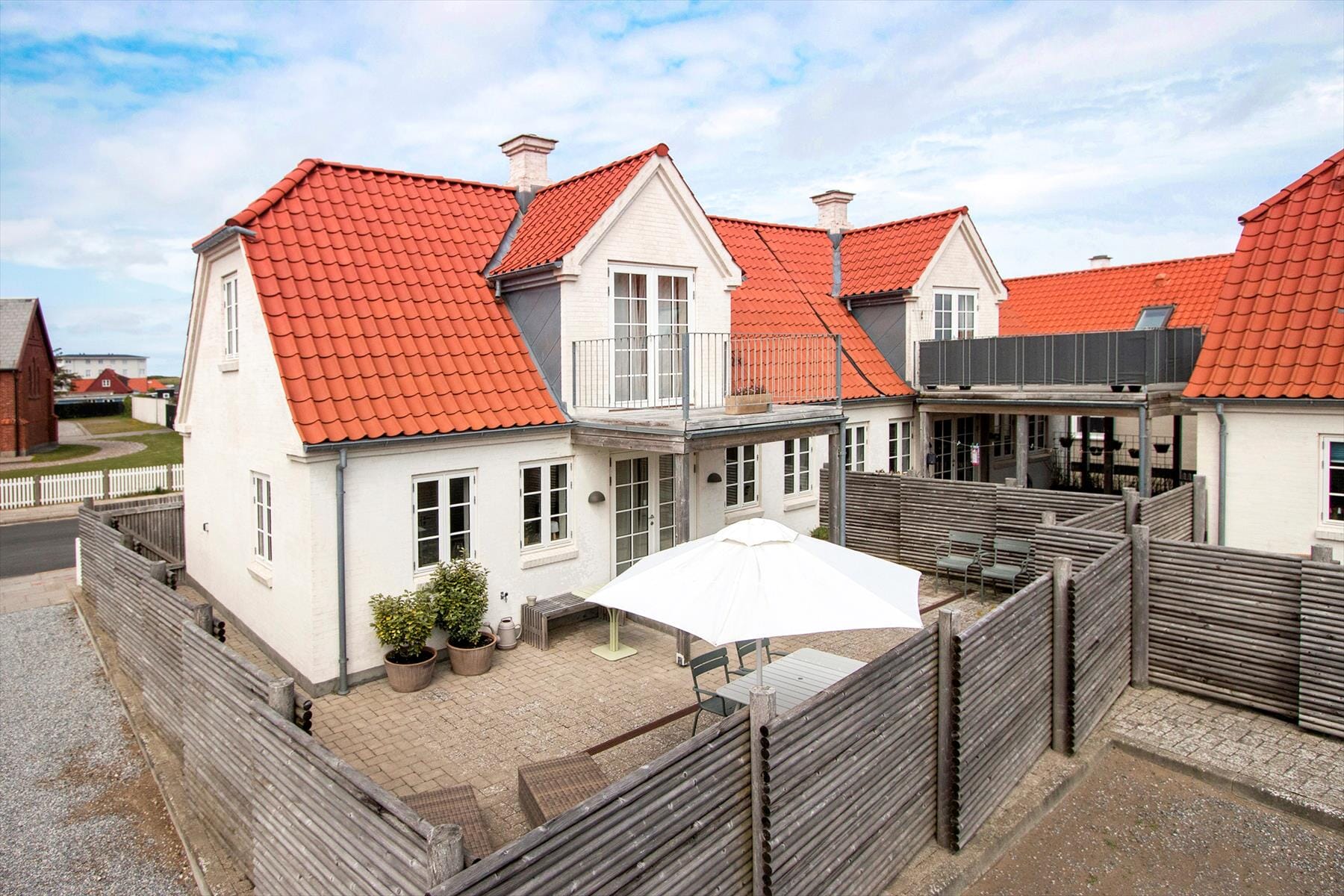 The holiday home features an enclosed terrace where you can enjoy the Danish summer weather. Garden furniture, sun loungers, and a grill are naturally available. The courtyard behind the terrace includes a private parking space.
