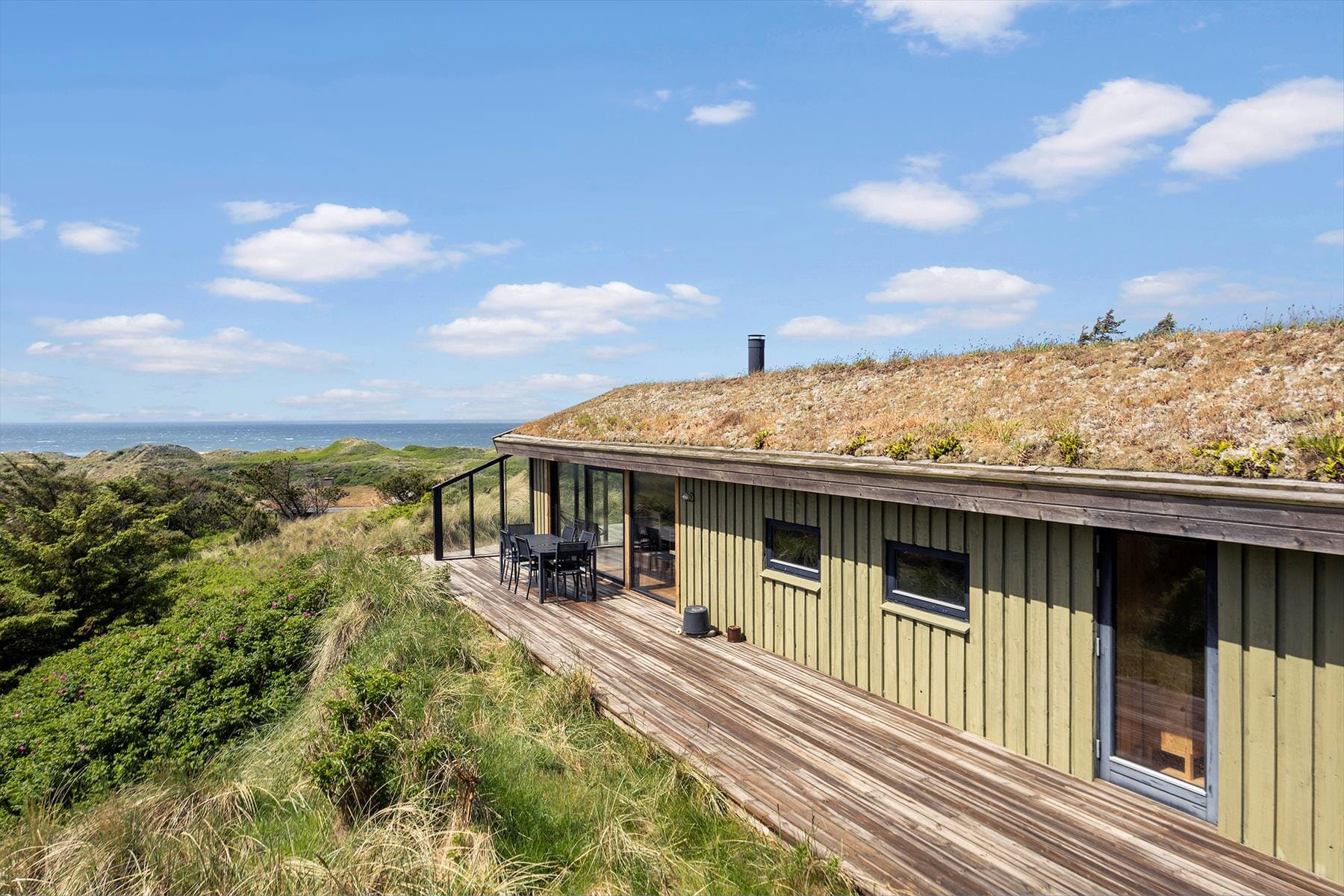 When the sun shines over Kettrup Bjerge, your holiday naturally moves outdoors. On the secluded plot, you can enjoy a tranquillity that’s becoming increasingly rare – interrupted only by birdsong and the sound of the wind sweeping over the dune landscape. There are plenty of sheltered spots and sunny corners where you can settle in – whether you prefer a quiet moment in a deckchair with a good book or a glass of wine in the evening sun with panoramic views over the North Sea. It’s easy to find your balance here – and to feel far away from the pace of everyday life. When night falls and the stars appear above the dunes, there’s something almost magical about the silence and the view that stretches all the way to the horizon.