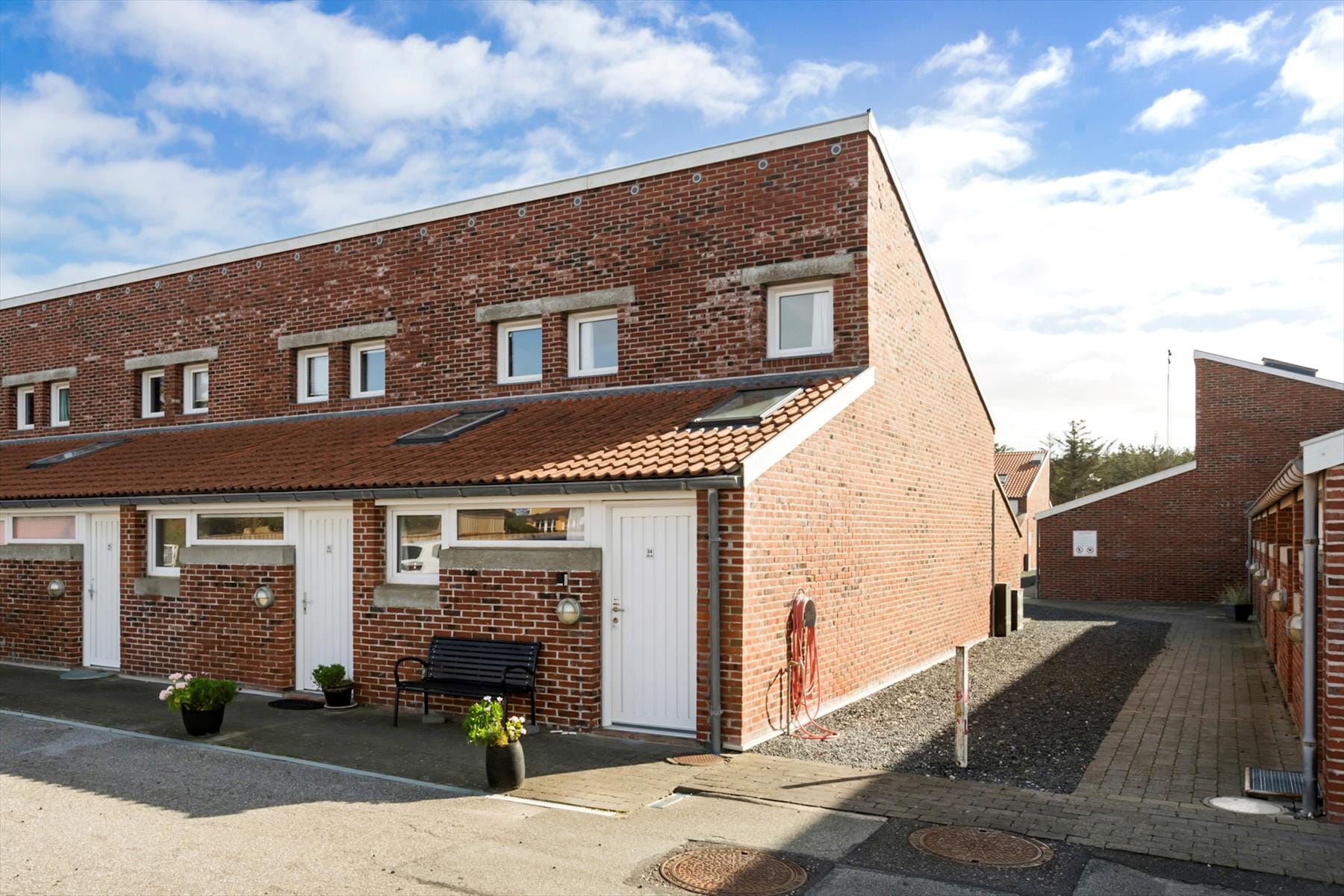 The apartment is part of a holiday center located in the southern part of Løkken. It accommodates up to 6 people, and we recommend it for a small family or a couple who need a good and functional base for an active vacation. Upon arrival at the property, which was designed by the architect firm Friis and Moltke, you are immediately enveloped in the cozy holiday atmosphere. The home features a lovely open ground floor with a kitchen/dining area and a living room with high ceilings. On the ground floor, there is a bedroom with a double bed, while the first floor has two bedrooms—one with a double bed and the other with two single beds. The apartment includes a guest toilet as well as a bathroom with a shower.Modern amenities include a new heat pump, electric heating, and cable TV with 25 channels (Danish, German, Swedish, and Norwegian). If you bring your laptop or tablet, you can connect to the wireless 5G internet to check emails, watch a movie, or search for information about the region’s many excursions and attractions.