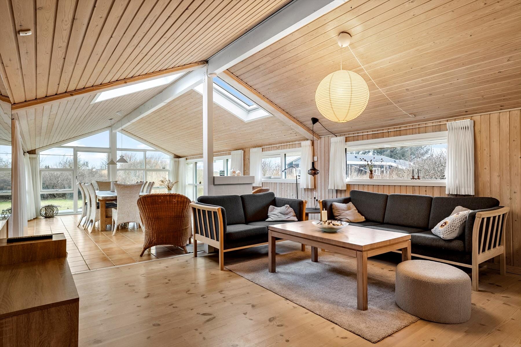 From the moment you step into the holiday home, you’ll sense the true holiday home atmosphere. The ceiling rises all the way to the ridge, and the large windows in the living room – complemented by two skylights – allow daylight to stream in and fill the space with a bright and airy ambience. Here, you can sit back on the sofa and watch the sun’s rays dance across the floor while conversations flow, or simply unwind after a day by the sea.