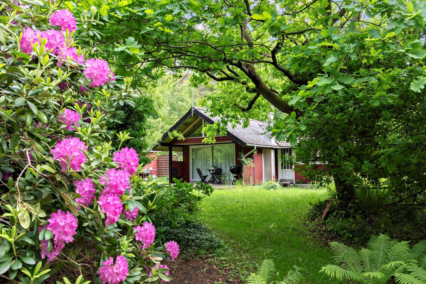 The summer house's garden is a large natural plot in the middle of the forest. From the house you have 600 meters to the coast and 1300 meters to Ulvshale Strand. There is access to the garden's partially covered terrace from both the living room and the kitchen. Here you can grill and enjoy the real holiday atmosphere. When the calm subsides and the children sleep, you can sit out here and enjoy the peace with a glass of wine.