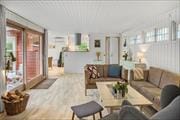 You enter a hallway that leads you directly to the living room and kitchen, which are in open connection via a large and bright bay window with a dining area. It is cozy and has a lovely cottage atmosphere with light furniture and a wood-burning stove on the wall. And is there anything better than sitting on cool days and hearing the firewood crackle? In the living room you can gather and talk about the day's experiences or plan the next day's trip. There is also a heat pump here and the kids can stream TV. The house has 2 rooms, with a double bed and an annex with 2 single beds. There is an almost new bathroom with toilet, sink and shower. From the living room there is a large window with access to a partially covered tiled terrace that is cozy furnished with garden furniture.