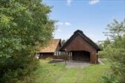 Between the thatched cottage and the attached carport, there is a sheltered area where you can almost always find a shelter— and it is, by the way, a calm and safe setting if you have a dog with you on holiday. Adjacent to the living room is a partially covered terrace with beautiful views over the open landscape, and there is also an open terrace facing southeast, making it difficult to decide where the best spot to sit is. The natural plot is large, and if you have come to Rømø to relax in peaceful surroundings, it is perfect that it is located in the middle of a small, closed side road connecting to the already tranquil Gl. Skinnevej.